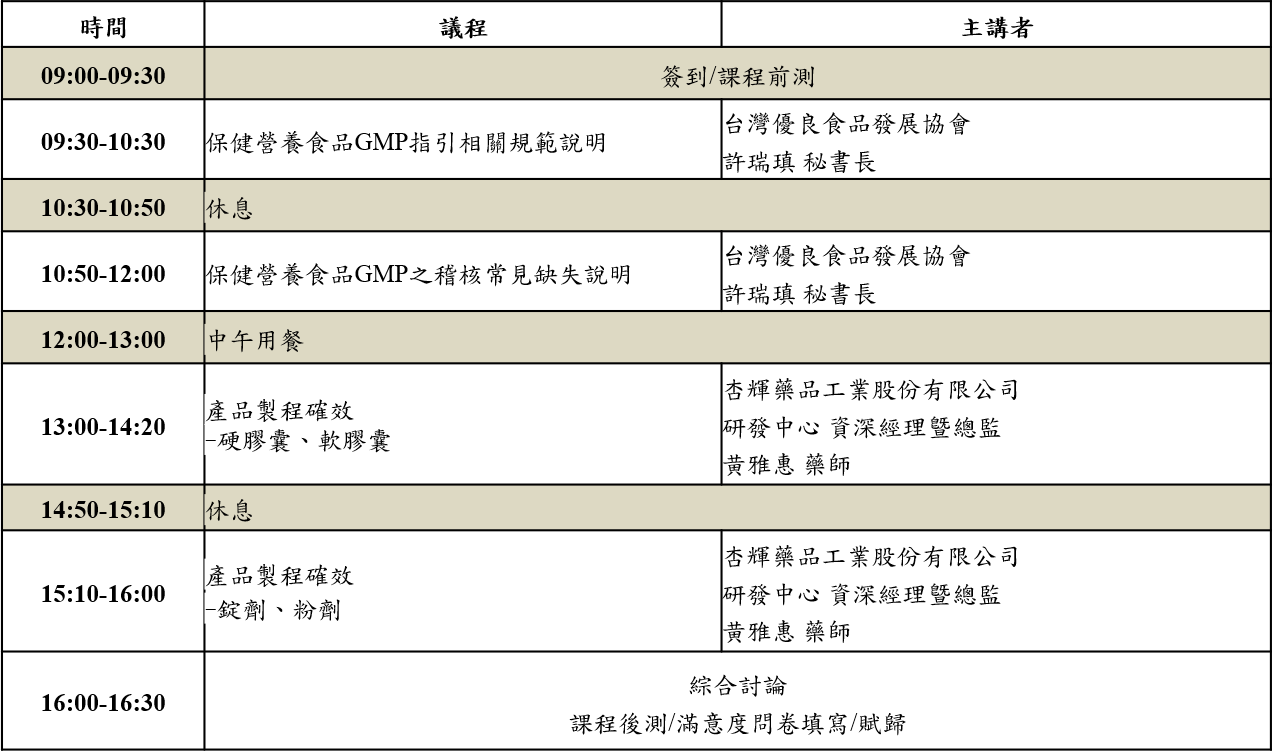 115年度保健營養食品GMP專題課程